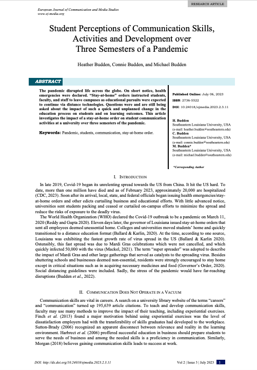 Student Perceptions of Communication Skills, Activities and Development over Three Semesters of a Pandemic