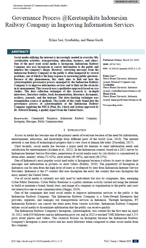 Governance Process @Keretaapikita Indonesian Railway Company in Improving Information Services