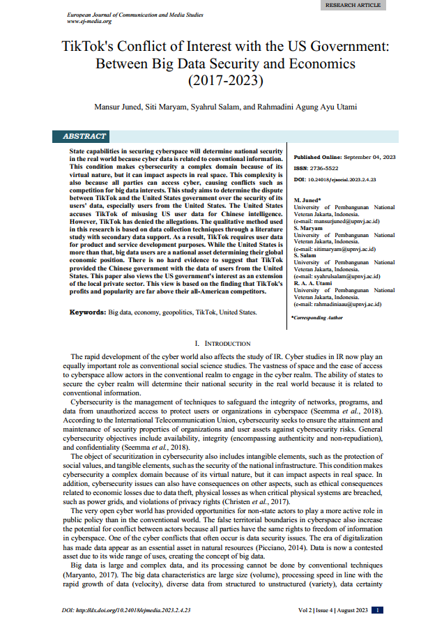 TikTok's Conflict of Interest with the US Government: Between Big Data Security and Economics (2017-2023)
