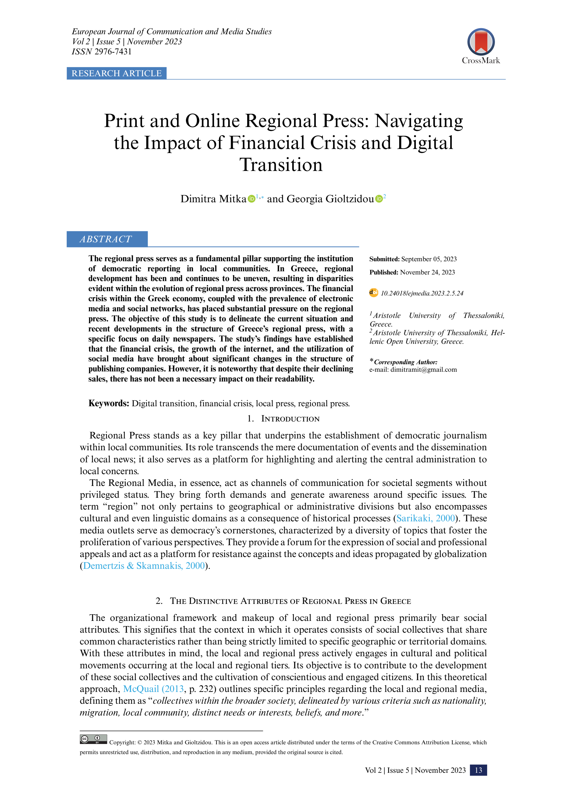 Print and Online Regional Press: Navigating the Impact of Financial Crisis and Digital Transition