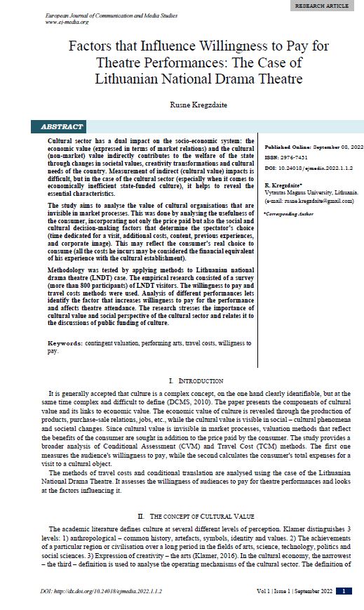 Factors that Influence Willingness to Pay for Theatre Performances: The Case of Lithuanian National Drama Theatre